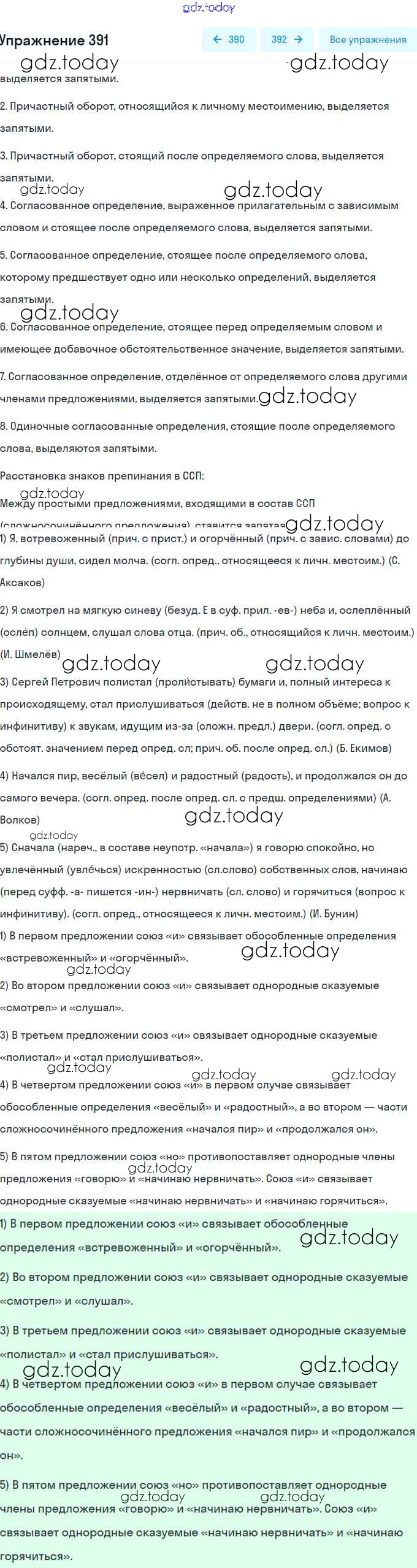На страницах сайта gdz.today вы найдете учебный и вспомогательный материал, направленный на улучшения знаний школьной программы. ГДЗ - онлайн мир знаний Решение. Упражнения 391 Учебнику по Русскому языку для 8 класса Рыбченкова, Александрова Просвещение, Просвещение 2015, 2022