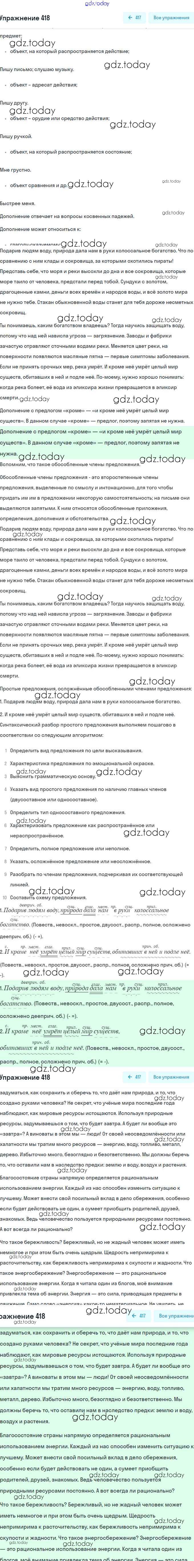 На страницах сайта gdz.today вы найдете учебный и вспомогательный материал, направленный на улучшения знаний школьной программы. ГДЗ - онлайн мир знаний Решение. Упражнения 418 Учебнику по Русскому языку для 8 класса Рыбченкова, Александрова Просвещение, Просвещение 2015, 2022