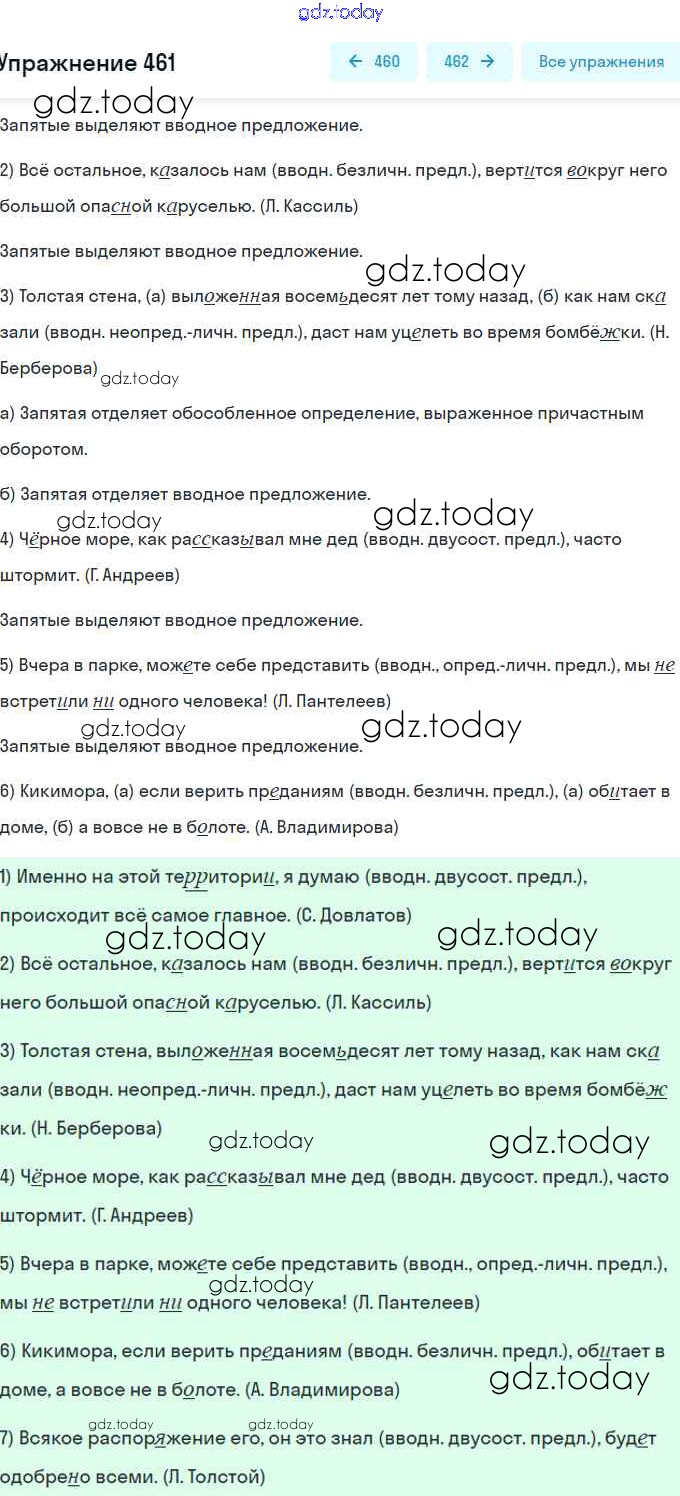 На страницах сайта gdz.today вы найдете учебный и вспомогательный материал, направленный на улучшения знаний школьной программы. ГДЗ - онлайн мир знаний Решение. Упражнения 461 Учебнику по Русскому языку для 8 класса Рыбченкова, Александрова Просвещение, Просвещение 2015, 2022