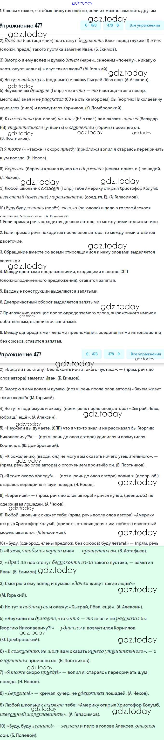 На страницах сайта gdz.today вы найдете учебный и вспомогательный материал, направленный на улучшения знаний школьной программы. ГДЗ - онлайн мир знаний Решение. Упражнения 477 Учебнику по Русскому языку для 8 класса Рыбченкова, Александрова Просвещение, Просвещение 2015, 2022