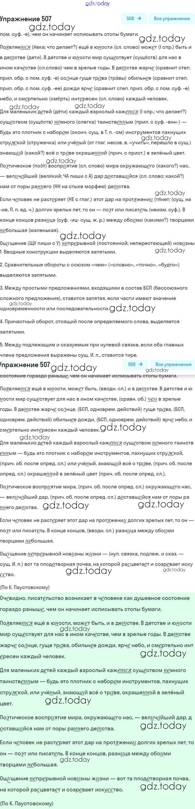 На страницах сайта gdz.today вы найдете учебный и вспомогательный материал, направленный на улучшения знаний школьной программы. ГДЗ - онлайн мир знаний Решение. Упражнения 507 Учебнику по Русскому языку для 8 класса Рыбченкова, Александрова Просвещение, Просвещение 2015, 2022