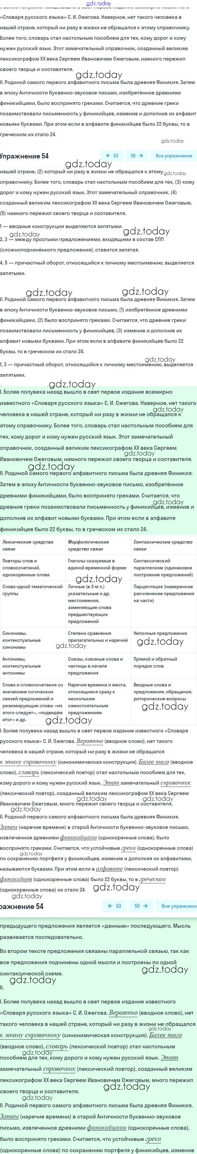 На страницах сайта gdz.today вы найдете учебный и вспомогательный материал, направленный на улучшения знаний школьной программы. ГДЗ - онлайн мир знаний Решение. Упражнения 54 Учебнику по Русскому языку для 8 класса Рыбченкова, Александрова Просвещение, Просвещение 2015, 2022