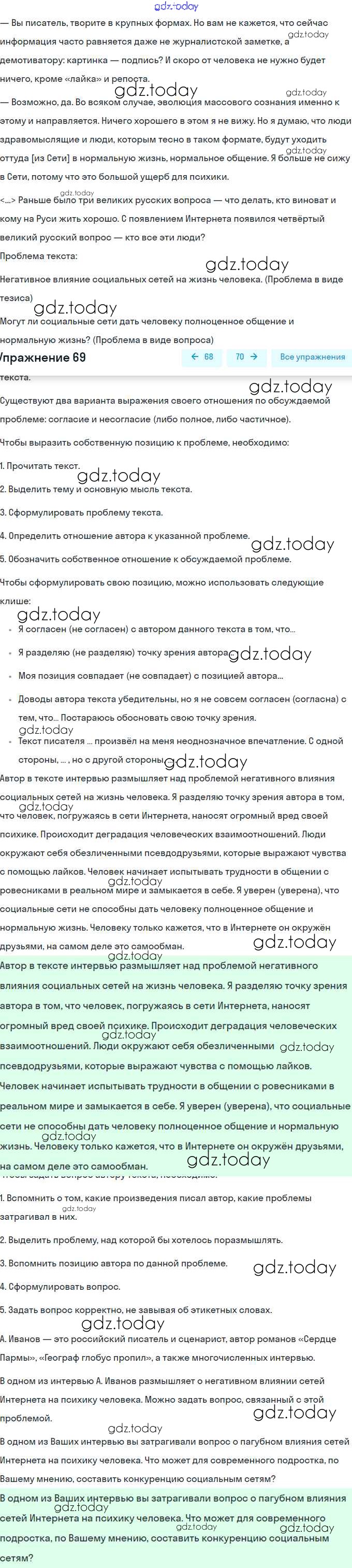 На страницах сайта gdz.today вы найдете учебный и вспомогательный материал, направленный на улучшения знаний школьной программы. ГДЗ - онлайн мир знаний Решение. Упражнения 69 Учебнику по Русскому языку для 8 класса Рыбченкова, Александрова Просвещение, Просвещение 2015, 2022