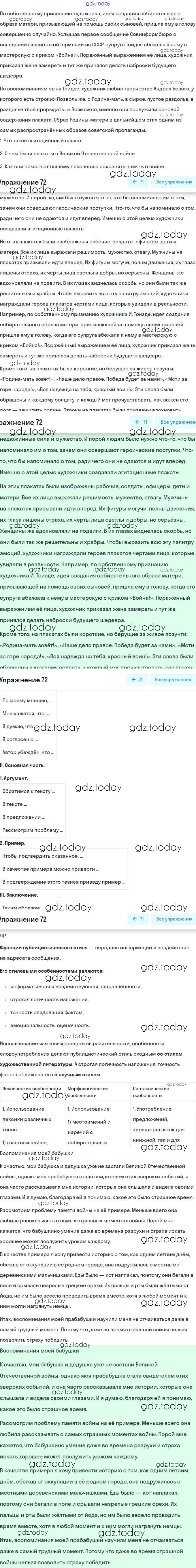 На страницах сайта gdz.today вы найдете учебный и вспомогательный материал, направленный на улучшения знаний школьной программы. ГДЗ - онлайн мир знаний Решение. Упражнения 72 Учебнику по Русскому языку для 8 класса Рыбченкова, Александрова Просвещение, Просвещение 2015, 2022