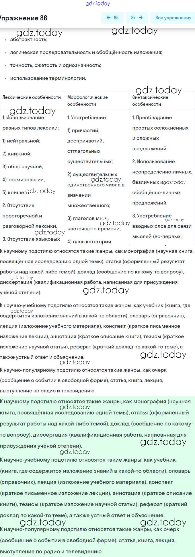 На страницах сайта gdz.today вы найдете учебный и вспомогательный материал, направленный на улучшения знаний школьной программы. ГДЗ - онлайн мир знаний Решение. Упражнения 86 Учебнику по Русскому языку для 8 класса Рыбченкова, Александрова Просвещение, Просвещение 2015, 2022