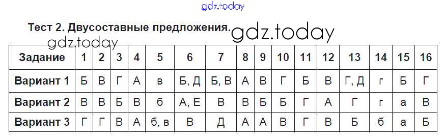 Ответы к Решение к тестам Тест №2. Двусоставные предложения Тестовым заданиям по Русскому языку для 8 класса Малюшкин Сфера 2019