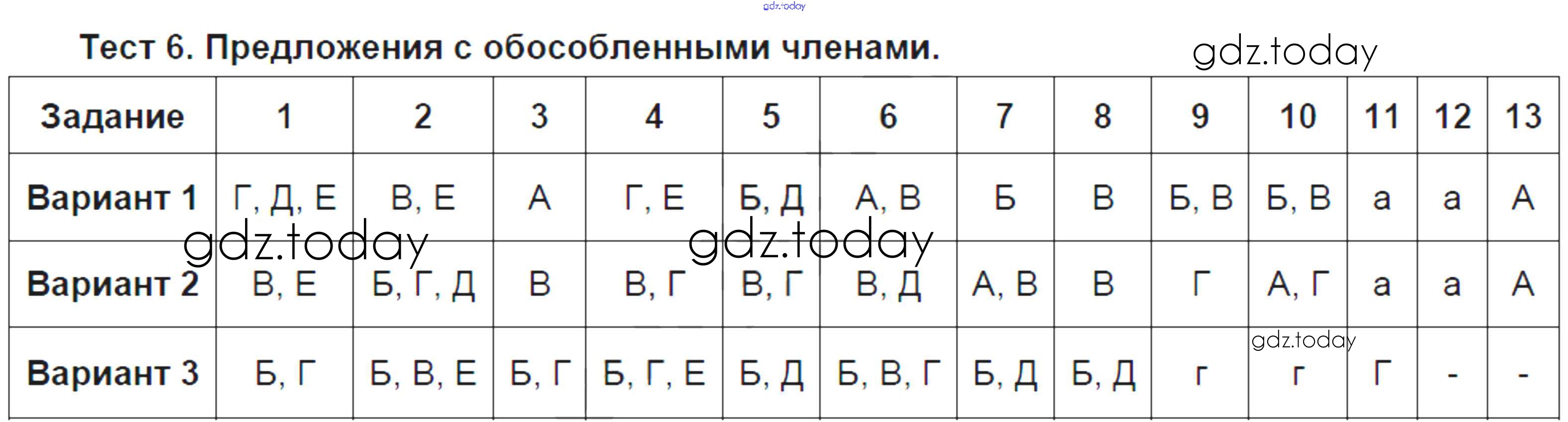 Ответы к Решение к тестам Тест №6. Предложения с обособленными членами Тестовым заданиям по Русскому языку для 8 класса Малюшкин Сфера 2019