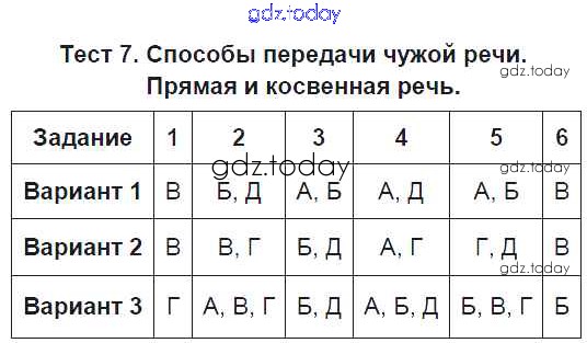 На страницах сайта gdz.today вы найдете учебный и вспомогательный материал, направленный на улучшения знаний школьной программы. ГДЗ - онлайн мир знаний Решение к тестам Тест №7. Способы передачи чужой речи. Прямая и косвенная речь Тестовым заданиям по Русскому языку для 8 класса Малюшкин Сфера 2019