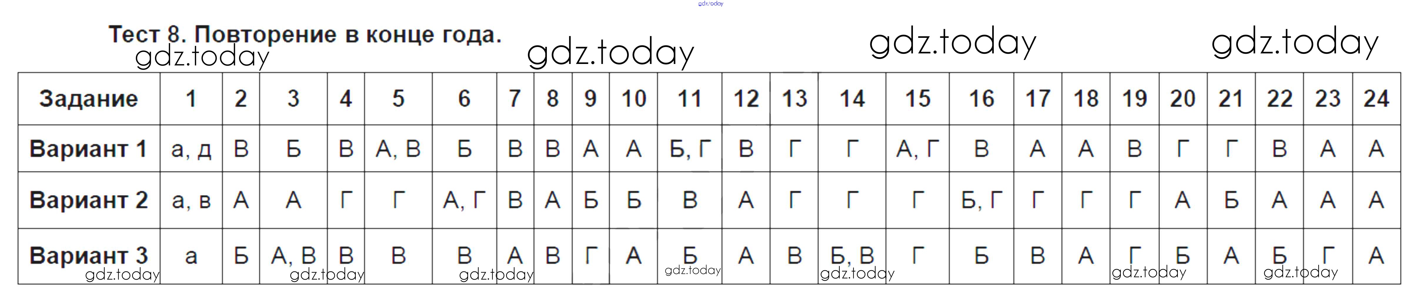 Ответы к Решение к тестам Тест №8. Повторение в конце года Тестовым заданиям по Русскому языку для 8 класса Малюшкин Сфера 2019