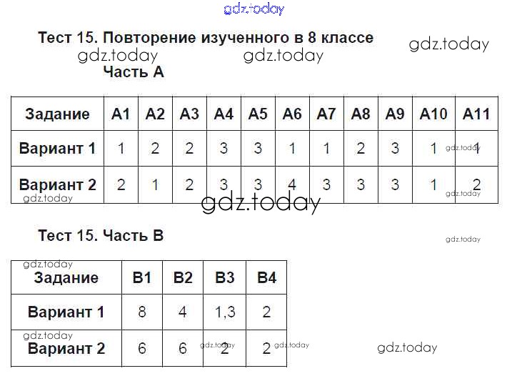 Ответы к Решение к тестам Тест №15. Повторение изученного в 8 классе Тестам по Русскому языку для 8 класса Селезнева Экзамен УМК 2014