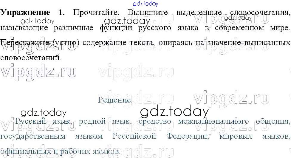 Ответы к Решение к упражнениям 1 Учебнику по Русскому языку для 8 класса Тростенцова, Ладыженская Просвещение 2014