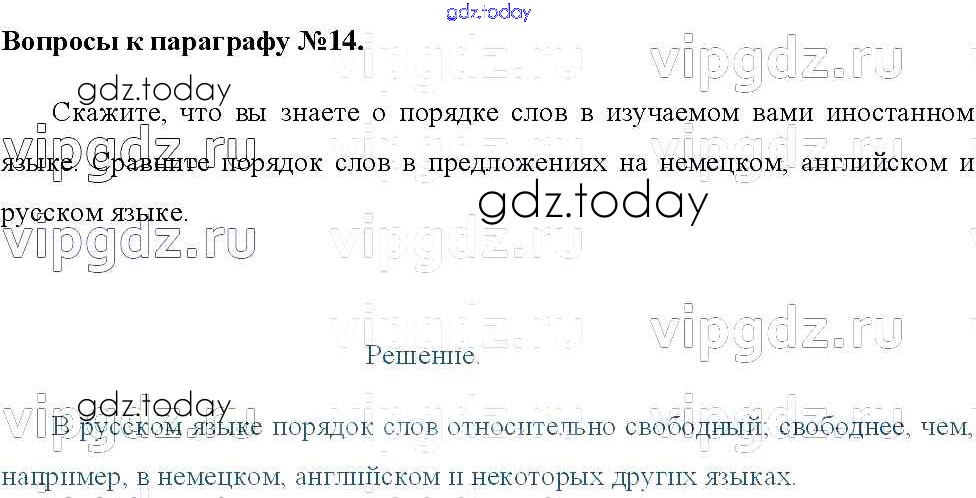 На страницах сайта gdz.today вы найдете учебный и вспомогательный материал, направленный на улучшения знаний школьной программы. ГДЗ - онлайн мир знаний Решение к вопросам к параграфам §14 Учебнику по Русскому языку для 8 класса Тростенцова, Ладыженская Просвещение 2014
