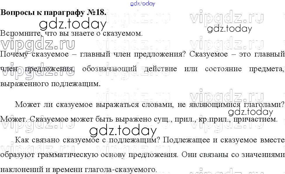 На страницах сайта gdz.today вы найдете учебный и вспомогательный материал, направленный на улучшения знаний школьной программы. ГДЗ - онлайн мир знаний Решение к вопросам к параграфам §18 Учебнику по Русскому языку для 8 класса Тростенцова, Ладыженская Просвещение 2014
