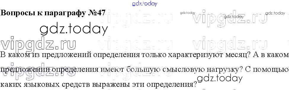 На страницах сайта gdz.today вы найдете учебный и вспомогательный материал, направленный на улучшения знаний школьной программы. ГДЗ - онлайн мир знаний Решение к вопросам к параграфам §47 Учебнику по Русскому языку для 8 класса Тростенцова, Ладыженская Просвещение 2014