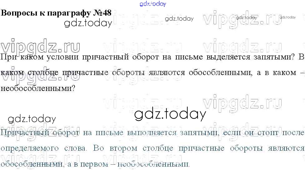 На страницах сайта gdz.today вы найдете учебный и вспомогательный материал, направленный на улучшения знаний школьной программы. ГДЗ - онлайн мир знаний Решение к вопросам к параграфам §48 Учебнику по Русскому языку для 8 класса Тростенцова, Ладыженская Просвещение 2014