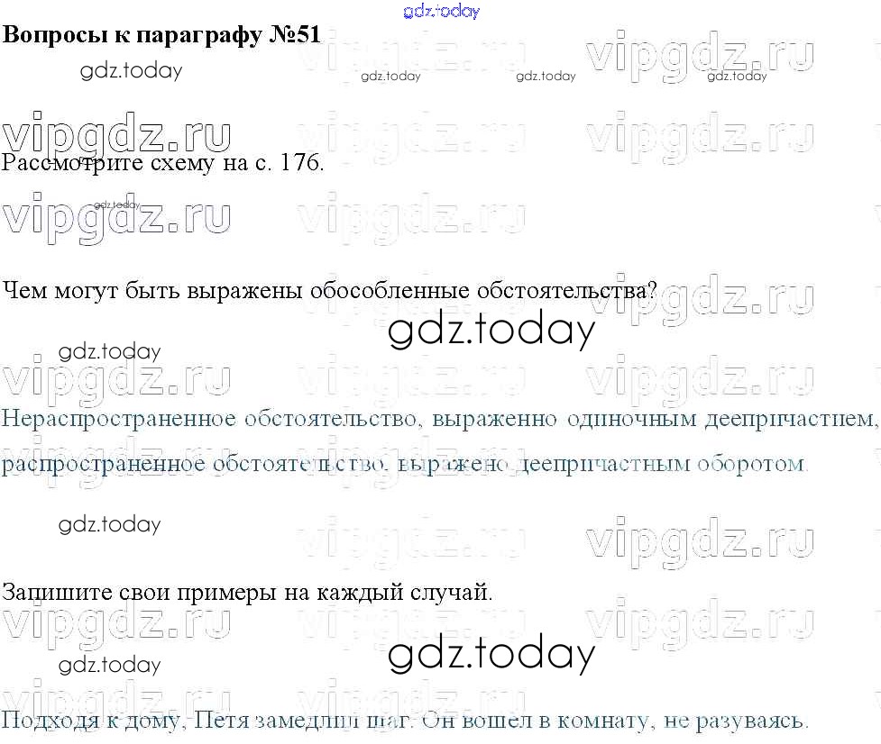 На страницах сайта gdz.today вы найдете учебный и вспомогательный материал, направленный на улучшения знаний школьной программы. ГДЗ - онлайн мир знаний Решение к вопросам к параграфам §51 Учебнику по Русскому языку для 8 класса Тростенцова, Ладыженская Просвещение 2014