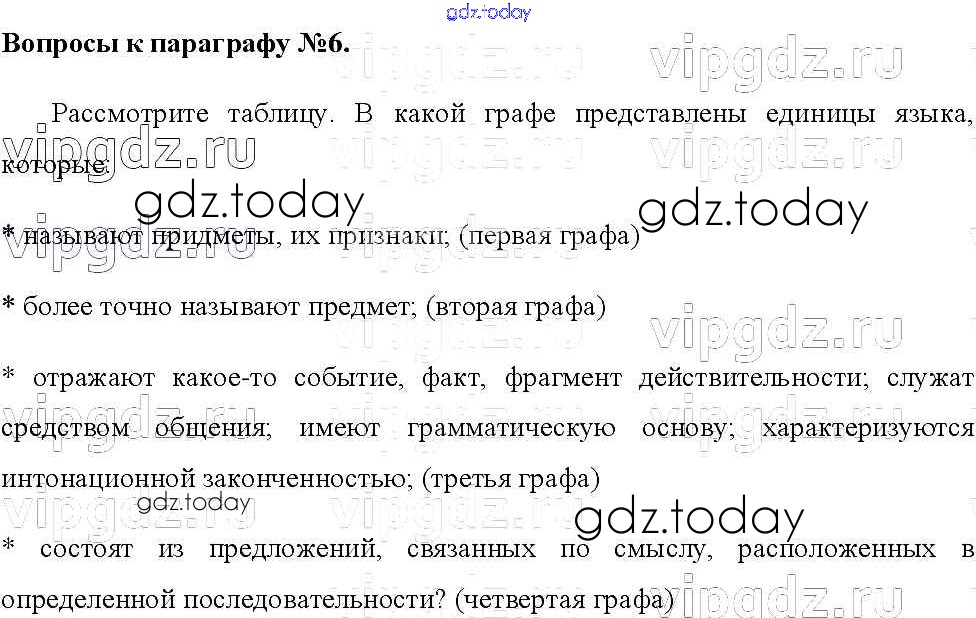 На страницах сайта gdz.today вы найдете учебный и вспомогательный материал, направленный на улучшения знаний школьной программы. ГДЗ - онлайн мир знаний Решение к вопросам к параграфам §6 Учебнику по Русскому языку для 8 класса Тростенцова, Ладыженская Просвещение 2014