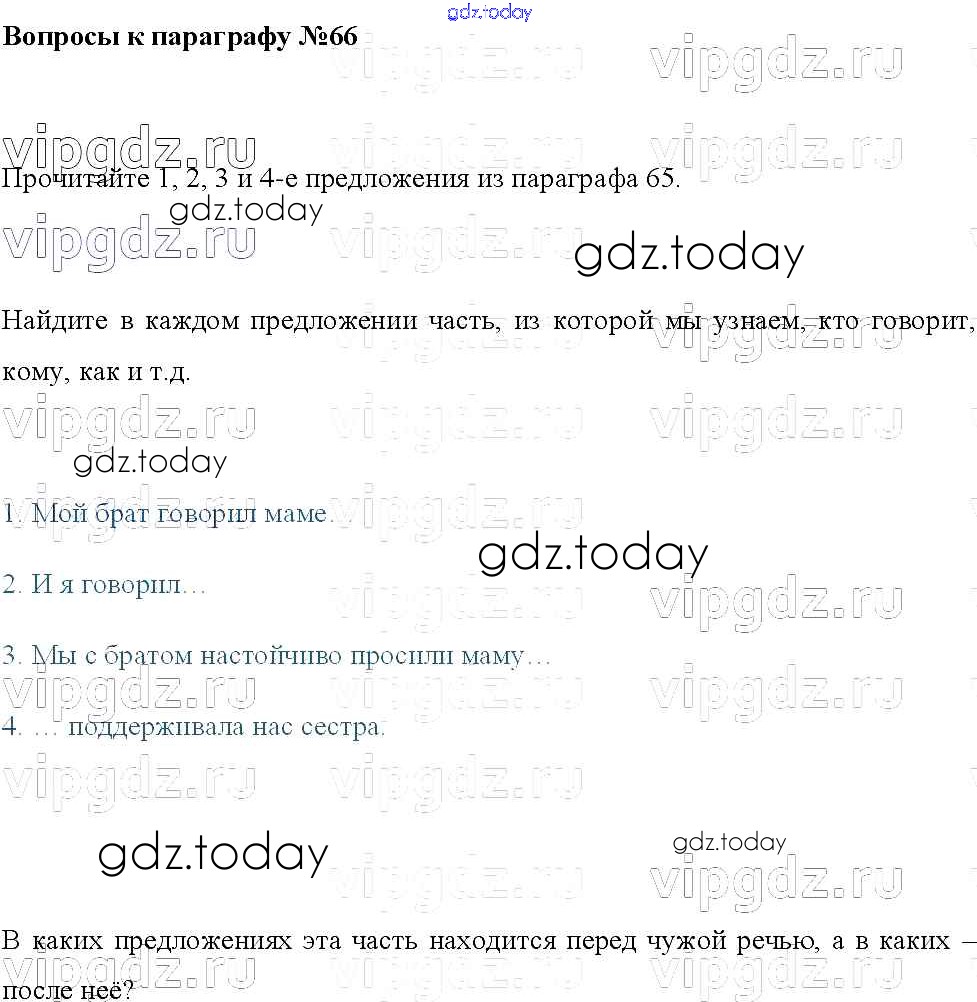 На страницах сайта gdz.today вы найдете учебный и вспомогательный материал, направленный на улучшения знаний школьной программы. ГДЗ - онлайн мир знаний Решение к вопросам к параграфам §66 Учебнику по Русскому языку для 8 класса Тростенцова, Ладыженская Просвещение 2014