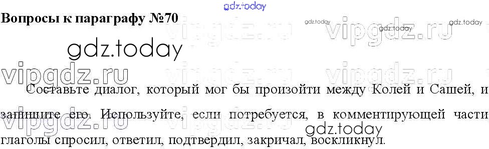 На страницах сайта gdz.today вы найдете учебный и вспомогательный материал, направленный на улучшения знаний школьной программы. ГДЗ - онлайн мир знаний Решение к вопросам к параграфам §70 Учебнику по Русскому языку для 8 класса Тростенцова, Ладыженская Просвещение 2014
