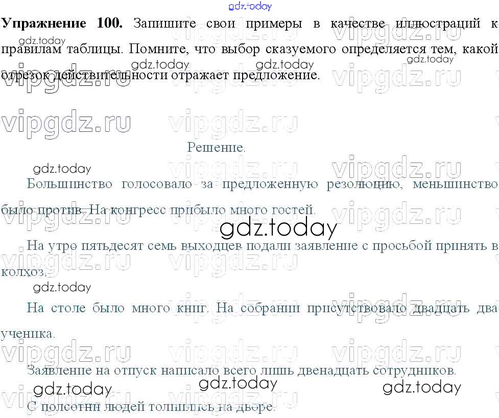 На страницах сайта gdz.today вы найдете учебный и вспомогательный материал, направленный на улучшения знаний школьной программы. ГДЗ - онлайн мир знаний Решение к упражнениям 100 Учебнику по Русскому языку для 8 класса Тростенцова, Ладыженская Просвещение 2014