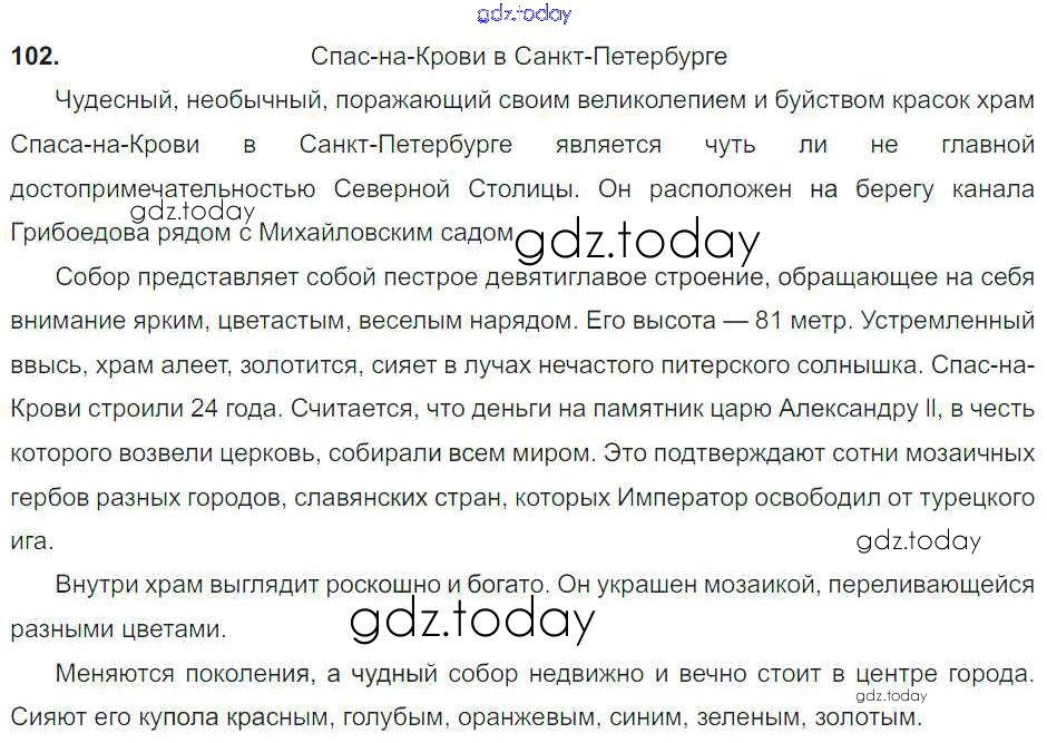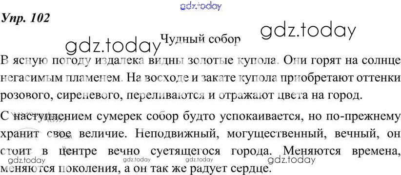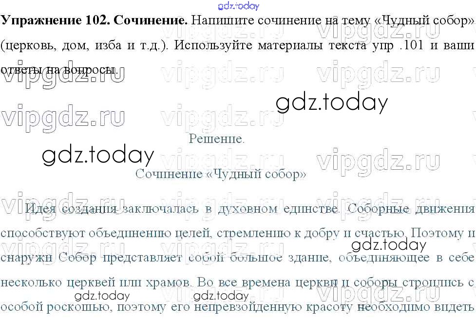 На страницах сайта gdz.today вы найдете учебный и вспомогательный материал, направленный на улучшения знаний школьной программы. ГДЗ - онлайн мир знаний Решение к упражнениям 102 Учебнику по Русскому языку для 8 класса Тростенцова, Ладыженская Просвещение 2014