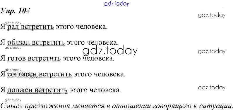 На страницах сайта gdz.today вы найдете учебный и вспомогательный материал, направленный на улучшения знаний школьной программы. ГДЗ - онлайн мир знаний Решение к упражнениям 104 Учебнику по Русскому языку для 8 класса Тростенцова, Ладыженская Просвещение 2014