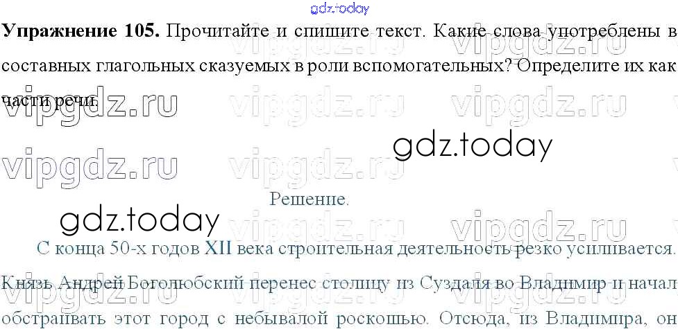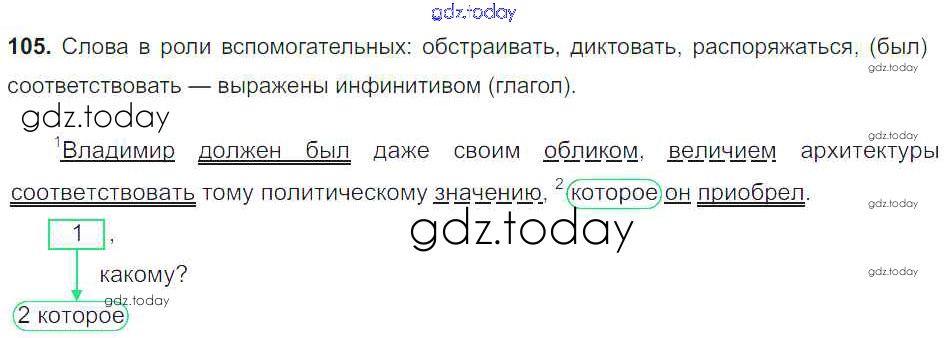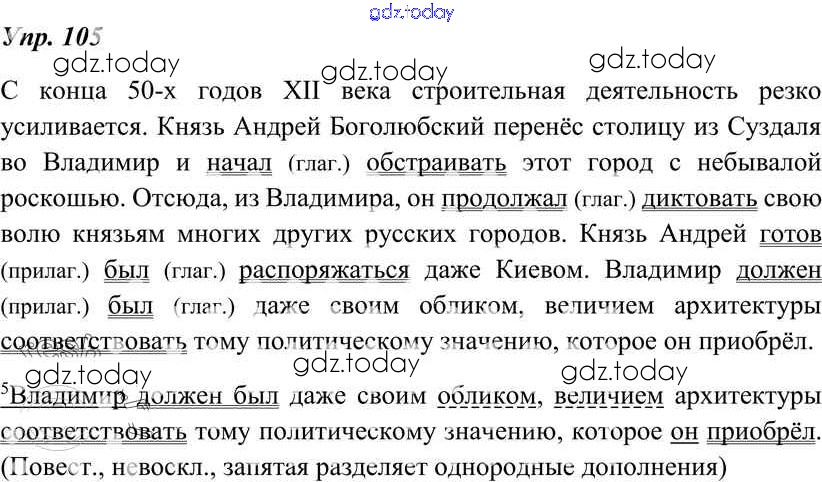 На страницах сайта gdz.today вы найдете учебный и вспомогательный материал, направленный на улучшения знаний школьной программы. ГДЗ - онлайн мир знаний Решение к упражнениям 105 Учебнику по Русскому языку для 8 класса Тростенцова, Ладыженская Просвещение 2014
