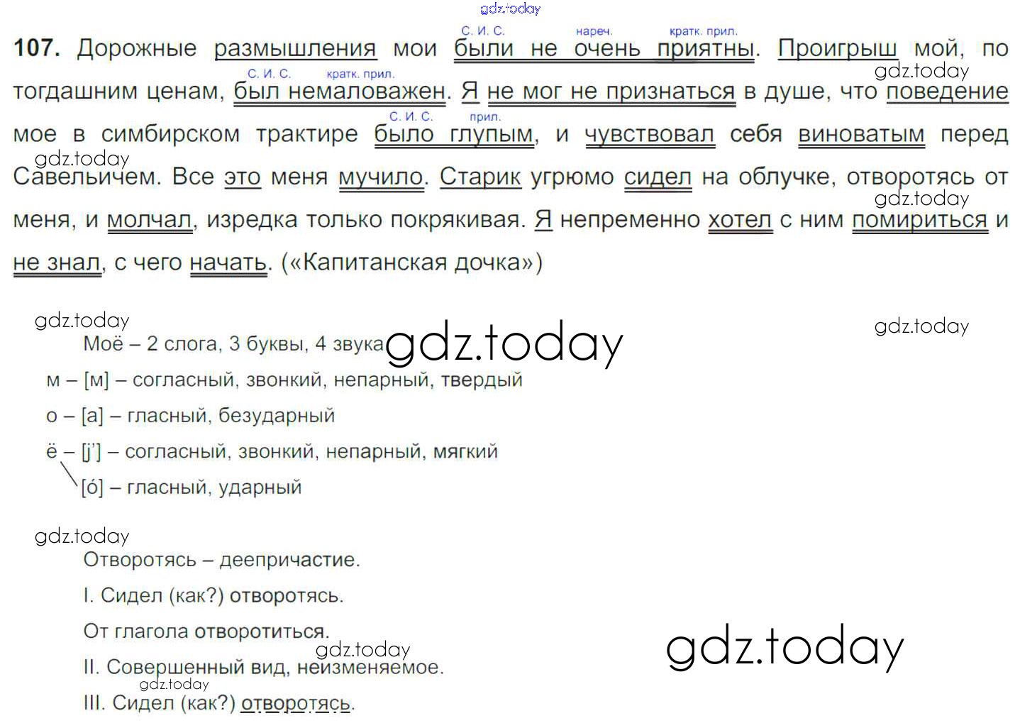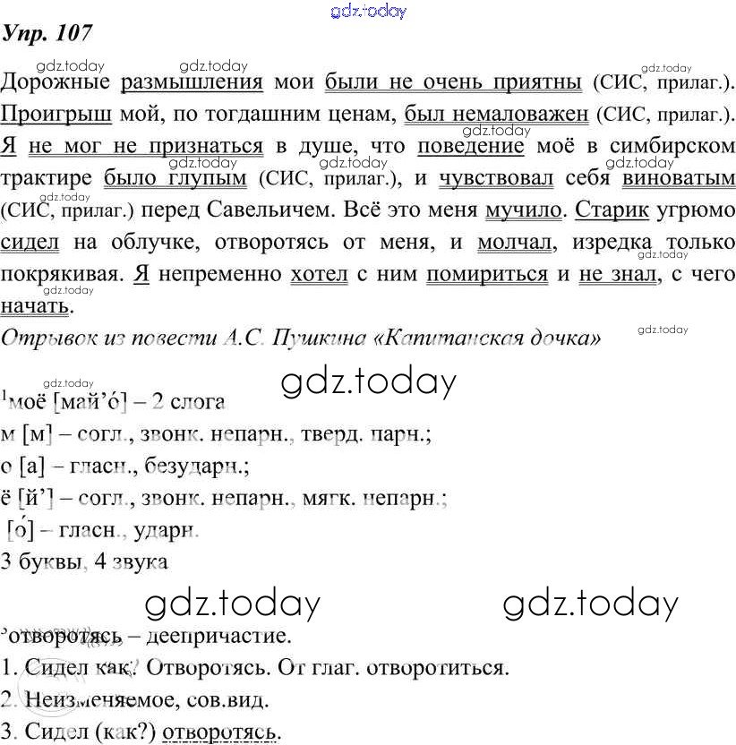 На страницах сайта gdz.today вы найдете учебный и вспомогательный материал, направленный на улучшения знаний школьной программы. ГДЗ - онлайн мир знаний Решение к упражнениям 107 Учебнику по Русскому языку для 8 класса Тростенцова, Ладыженская Просвещение 2014