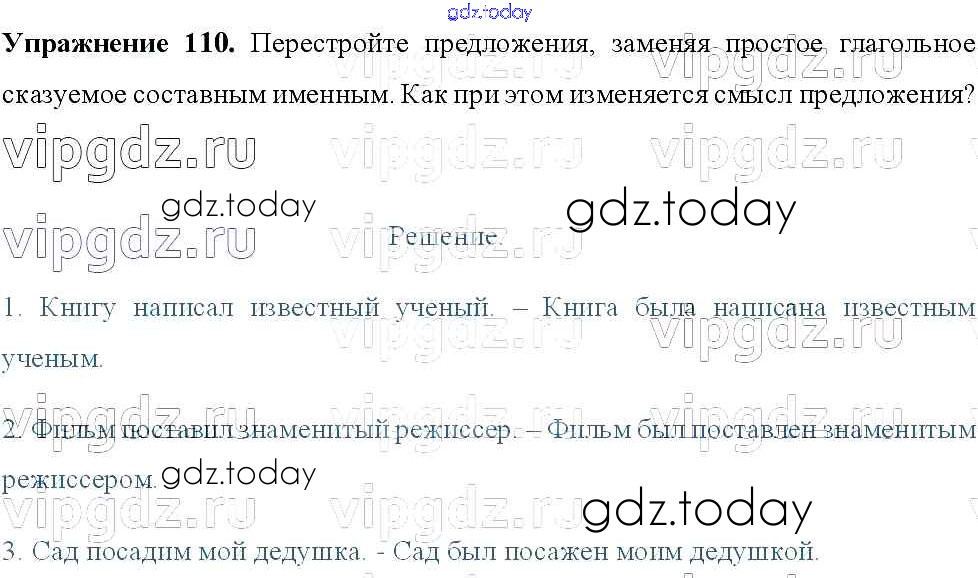 Ответы к Решение к упражнениям 110 Учебнику по Русскому языку для 8 класса Тростенцова, Ладыженская Просвещение 2014