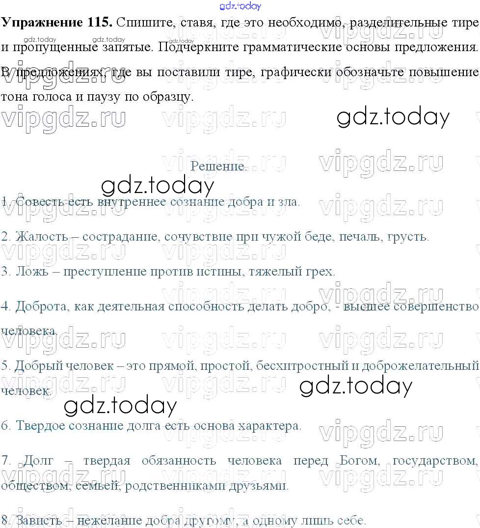 На страницах сайта gdz.today вы найдете учебный и вспомогательный материал, направленный на улучшения знаний школьной программы. ГДЗ - онлайн мир знаний Решение к упражнениям 115 Учебнику по Русскому языку для 8 класса Тростенцова, Ладыженская Просвещение 2014
