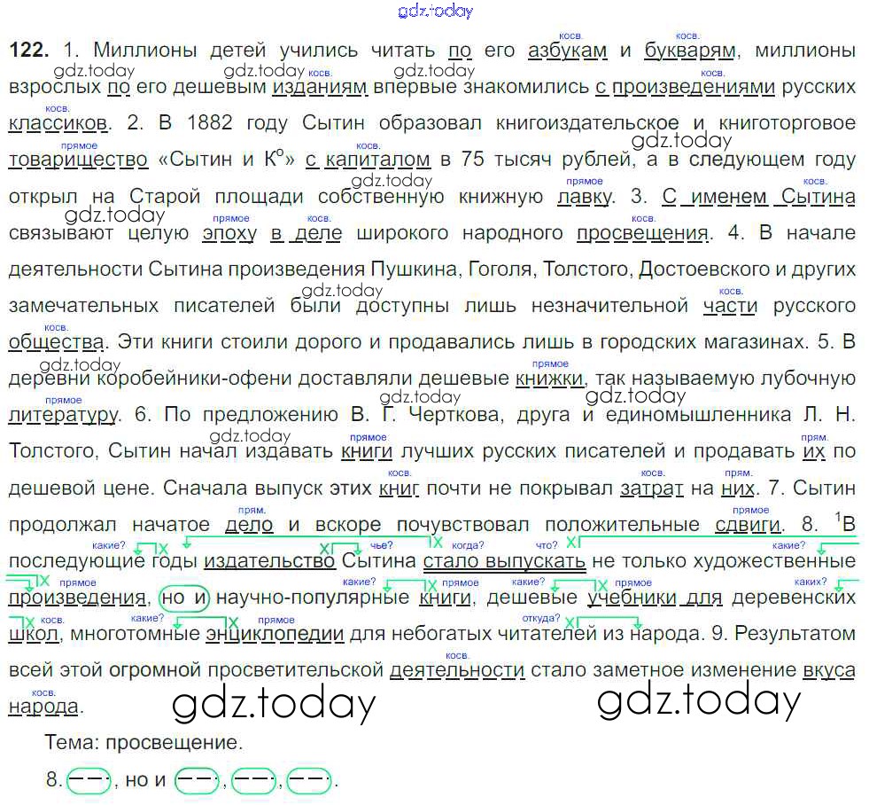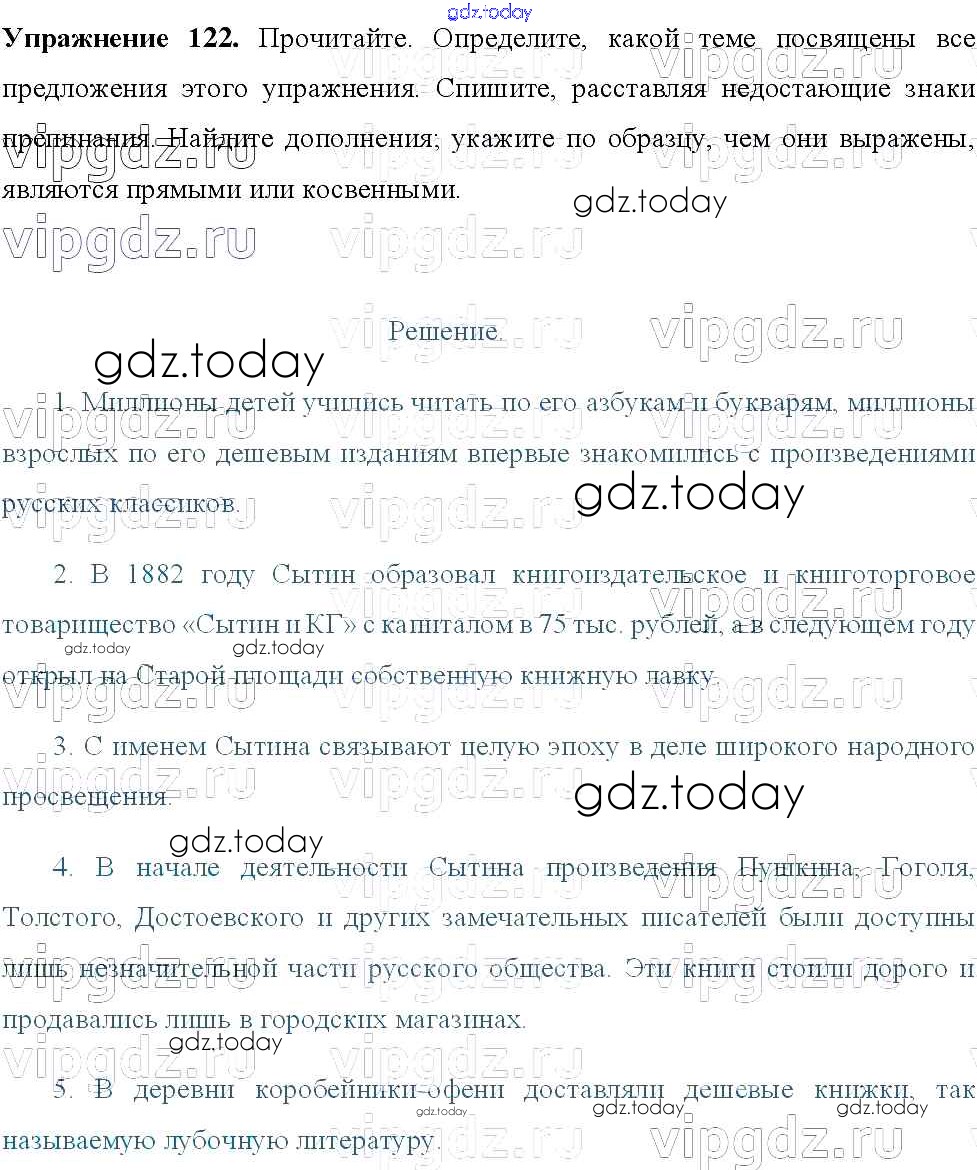 На страницах сайта gdz.today вы найдете учебный и вспомогательный материал, направленный на улучшения знаний школьной программы. ГДЗ - онлайн мир знаний Решение к упражнениям 122 Учебнику по Русскому языку для 8 класса Тростенцова, Ладыженская Просвещение 2014