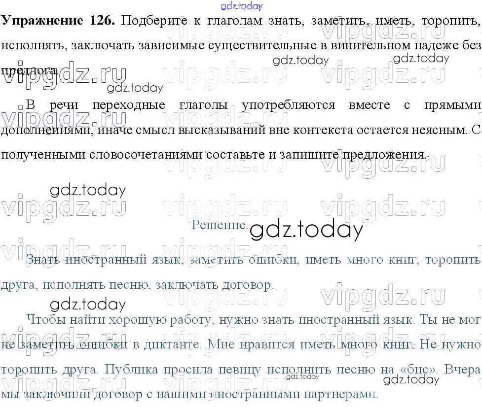 На страницах сайта gdz.today вы найдете учебный и вспомогательный материал, направленный на улучшения знаний школьной программы. ГДЗ - онлайн мир знаний Решение к упражнениям 126 Учебнику по Русскому языку для 8 класса Тростенцова, Ладыженская Просвещение 2014