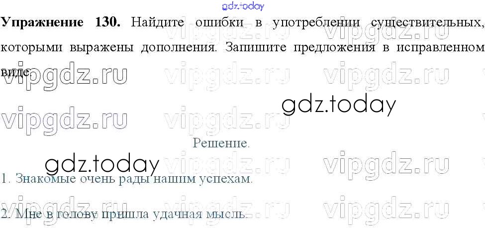 Ответы к Решение к упражнениям 130 Учебнику по Русскому языку для 8 класса Тростенцова, Ладыженская Просвещение 2014