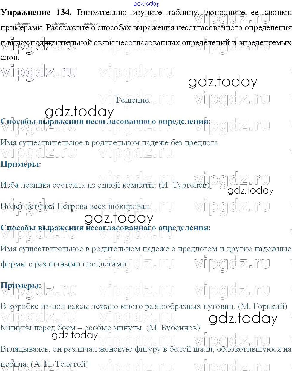 На страницах сайта gdz.today вы найдете учебный и вспомогательный материал, направленный на улучшения знаний школьной программы. ГДЗ - онлайн мир знаний Решение к упражнениям 134 Учебнику по Русскому языку для 8 класса Тростенцова, Ладыженская Просвещение 2014