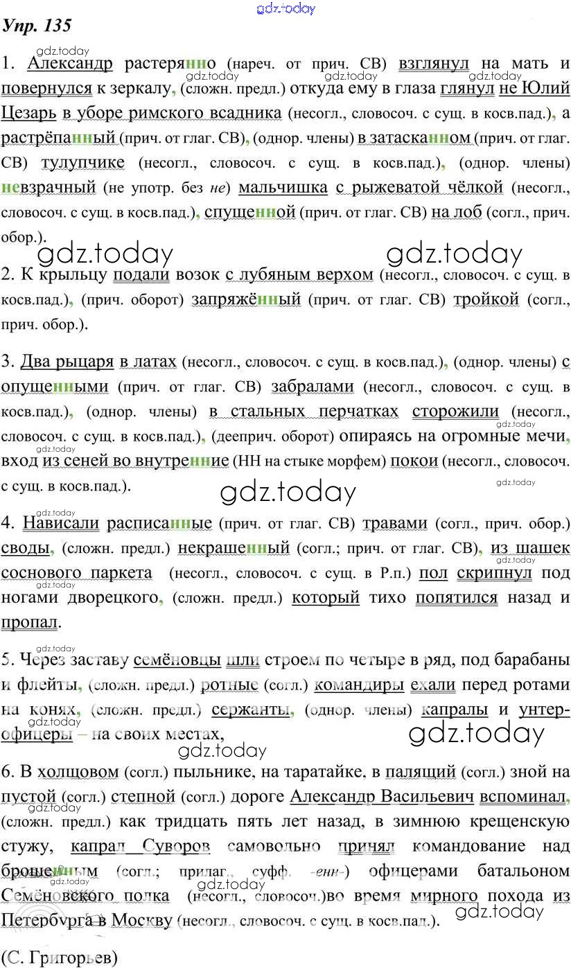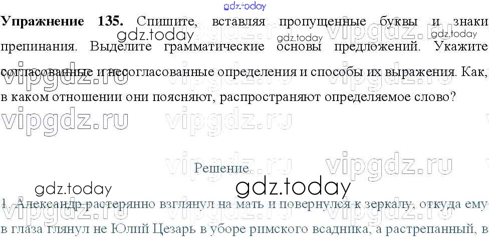 Ответы к Решение к упражнениям 135 Учебнику по Русскому языку для 8 класса Тростенцова, Ладыженская Просвещение 2014