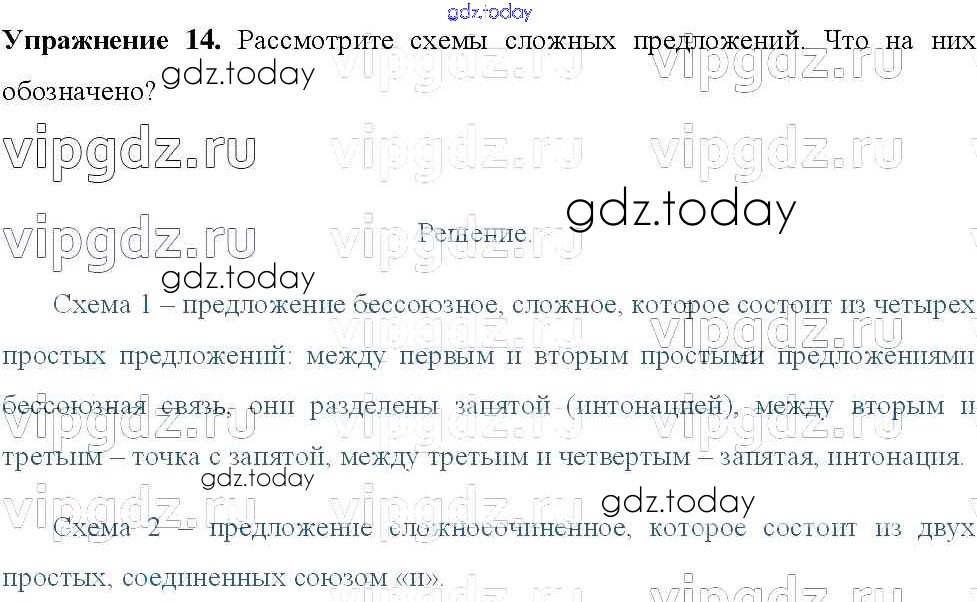 Ответы к Решение к упражнениям 14 Учебнику по Русскому языку для 8 класса Тростенцова, Ладыженская Просвещение 2014
