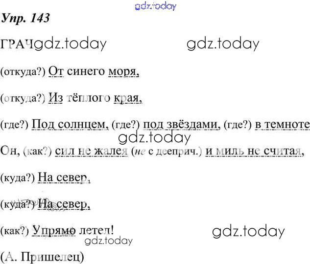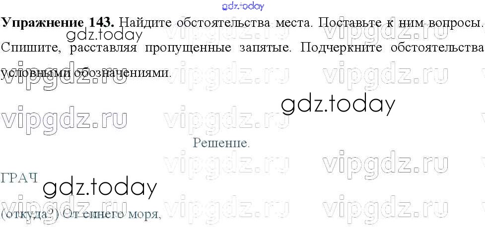 На страницах сайта gdz.today вы найдете учебный и вспомогательный материал, направленный на улучшения знаний школьной программы. ГДЗ - онлайн мир знаний Решение к упражнениям 143 Учебнику по Русскому языку для 8 класса Тростенцова, Ладыженская Просвещение 2014