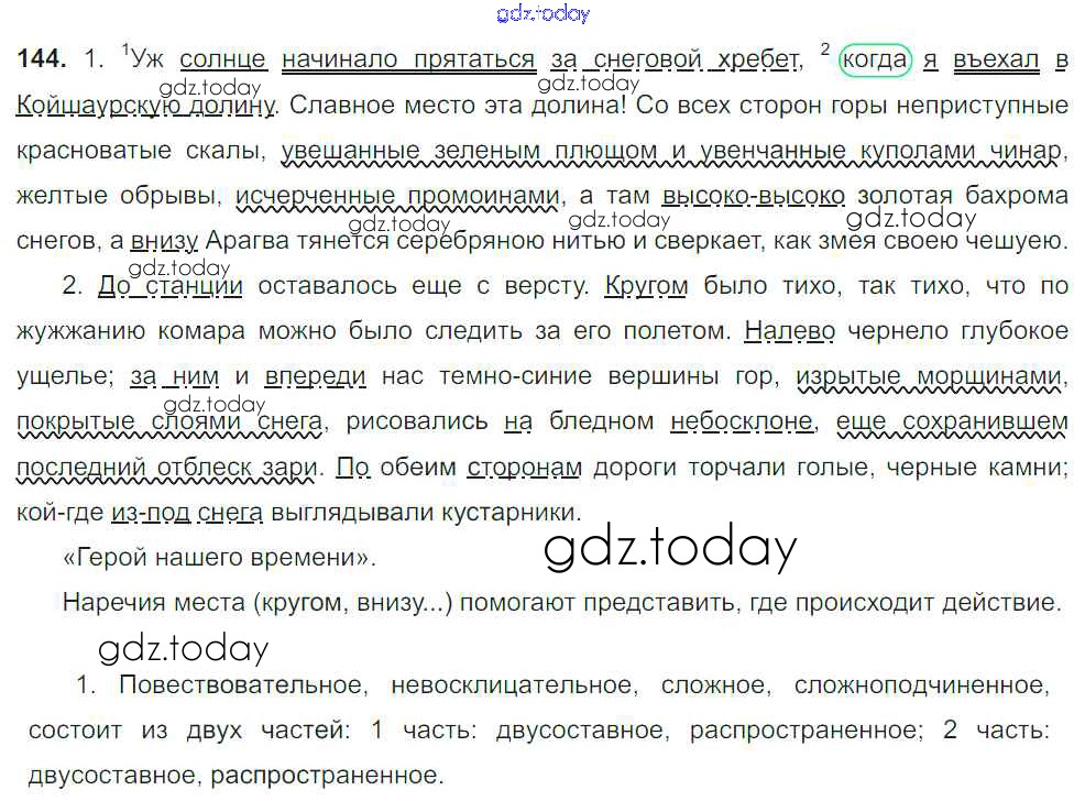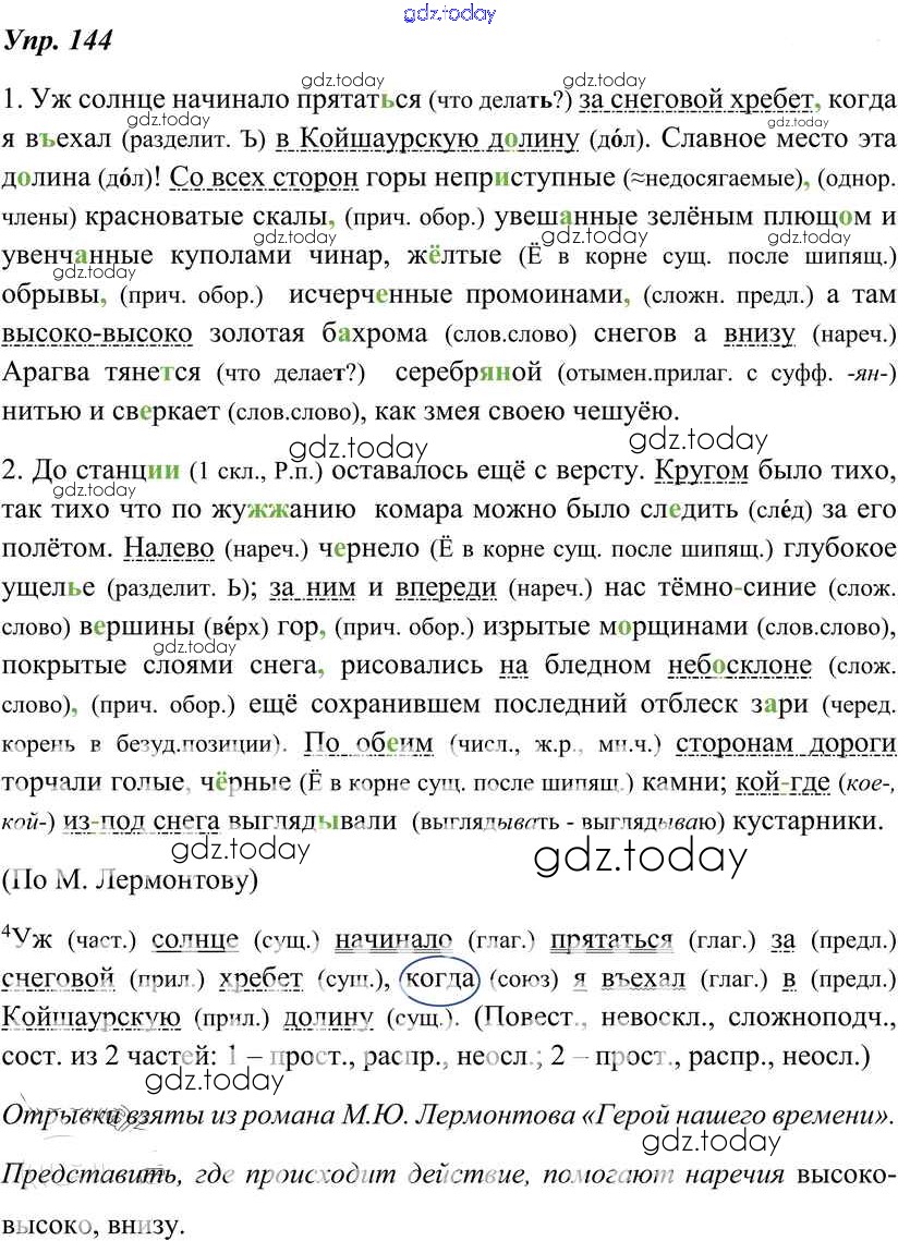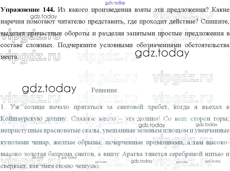 На страницах сайта gdz.today вы найдете учебный и вспомогательный материал, направленный на улучшения знаний школьной программы. ГДЗ - онлайн мир знаний Решение к упражнениям 144 Учебнику по Русскому языку для 8 класса Тростенцова, Ладыженская Просвещение 2014
