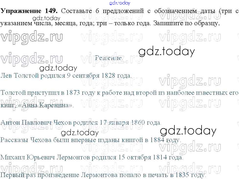 На страницах сайта gdz.today вы найдете учебный и вспомогательный материал, направленный на улучшения знаний школьной программы. ГДЗ - онлайн мир знаний Решение к упражнениям 149 Учебнику по Русскому языку для 8 класса Тростенцова, Ладыженская Просвещение 2014