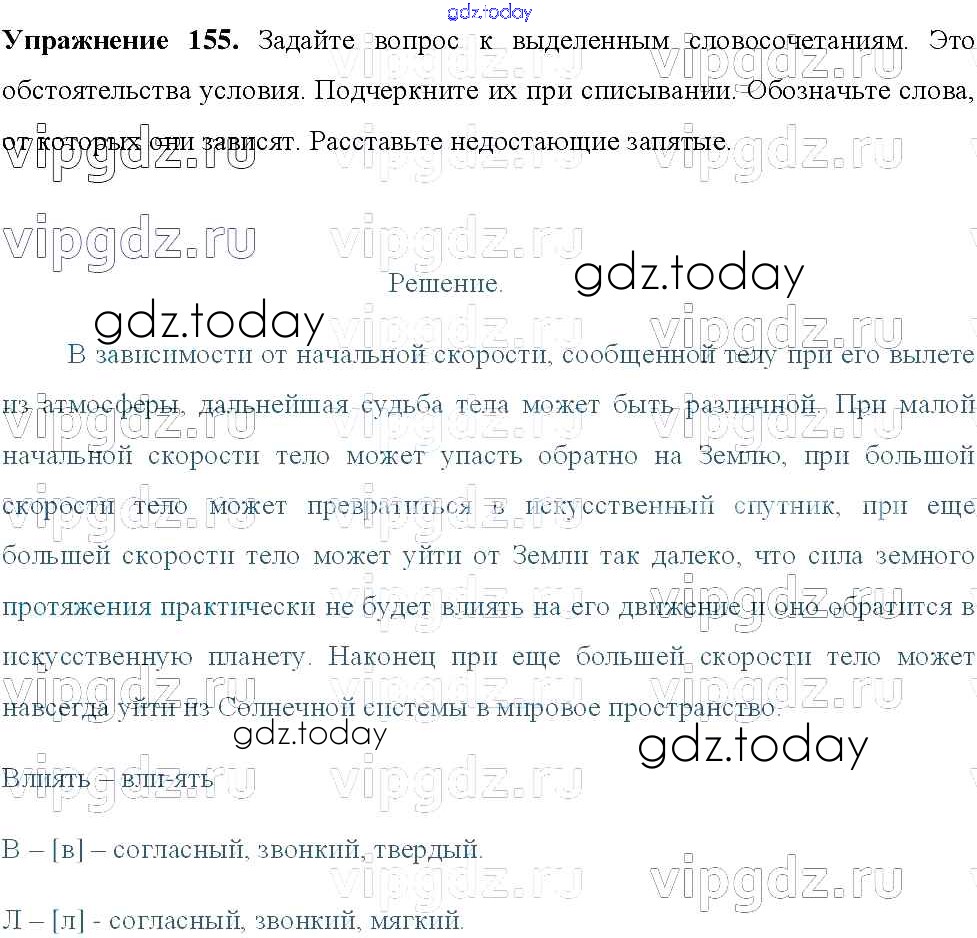На страницах сайта gdz.today вы найдете учебный и вспомогательный материал, направленный на улучшения знаний школьной программы. ГДЗ - онлайн мир знаний Решение к упражнениям 155 Учебнику по Русскому языку для 8 класса Тростенцова, Ладыженская Просвещение 2014