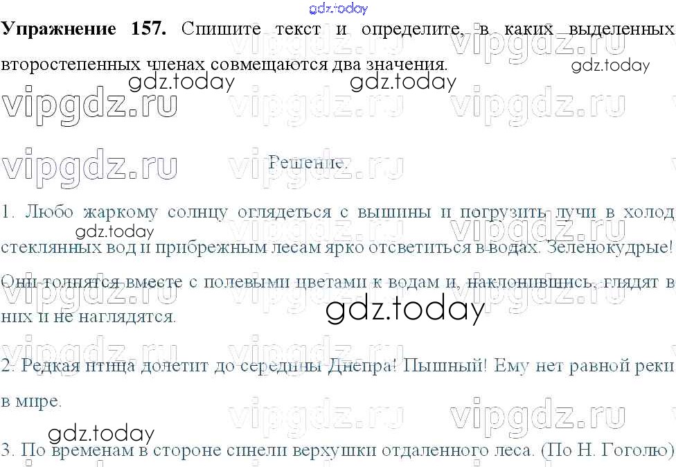 Ответы к Решение к упражнениям 157 Учебнику по Русскому языку для 8 класса Тростенцова, Ладыженская Просвещение 2014