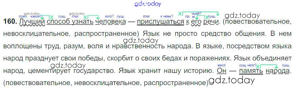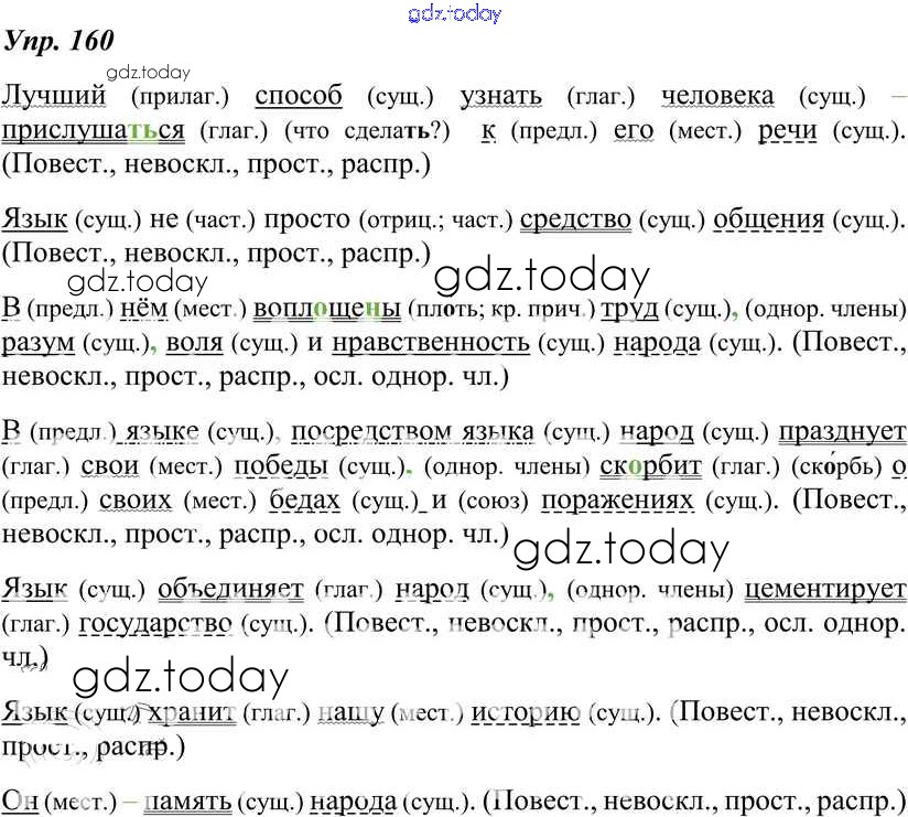 На страницах сайта gdz.today вы найдете учебный и вспомогательный материал, направленный на улучшения знаний школьной программы. ГДЗ - онлайн мир знаний Решение к упражнениям 160 Учебнику по Русскому языку для 8 класса Тростенцова, Ладыженская Просвещение 2014