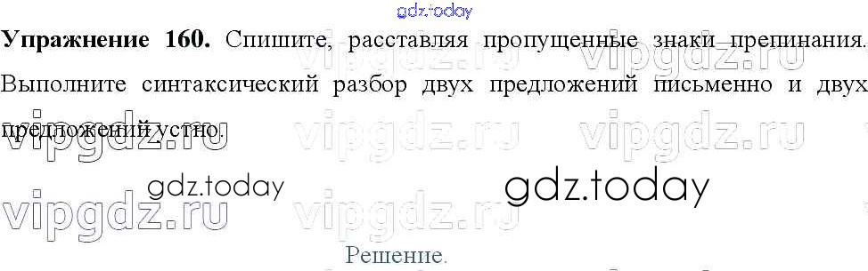 Ответы к Решение к упражнениям 160 Учебнику по Русскому языку для 8 класса Тростенцова, Ладыженская Просвещение 2014