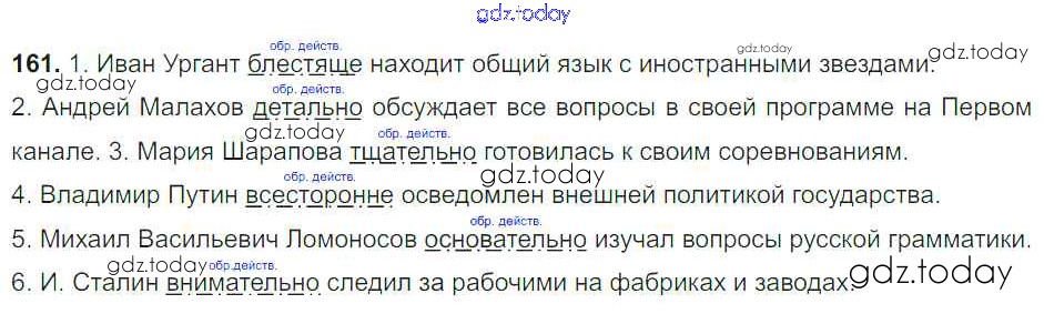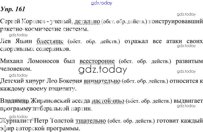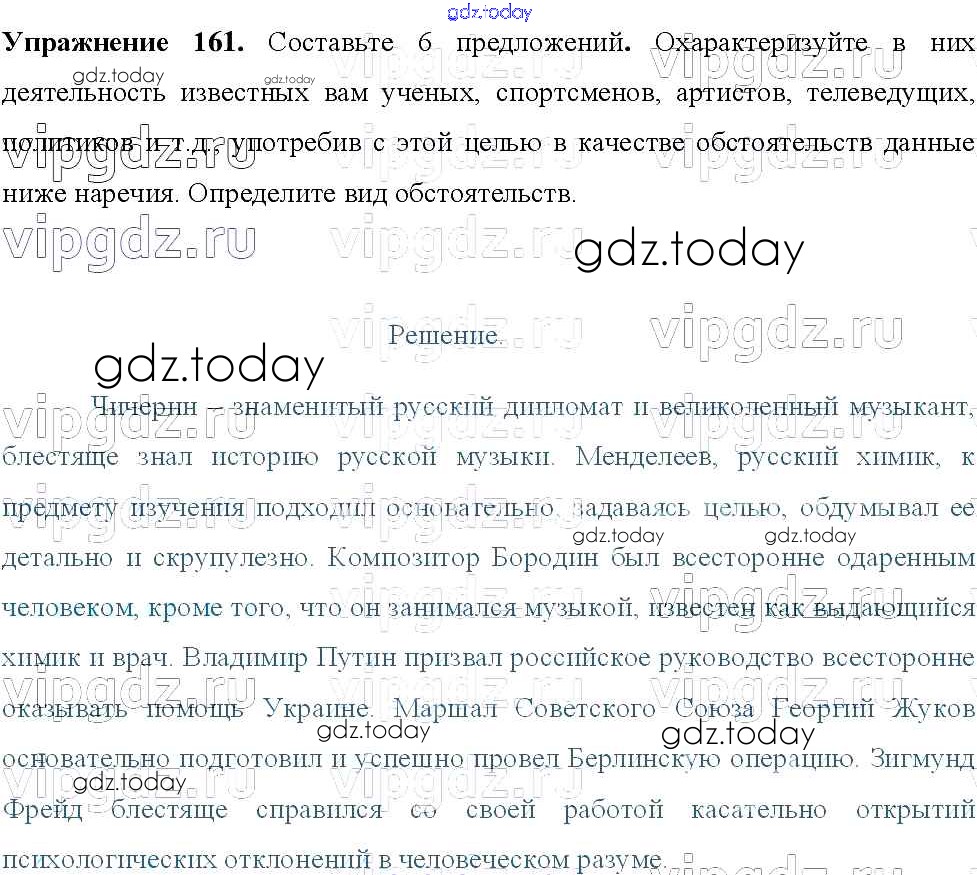 На страницах сайта gdz.today вы найдете учебный и вспомогательный материал, направленный на улучшения знаний школьной программы. ГДЗ - онлайн мир знаний Решение к упражнениям 161 Учебнику по Русскому языку для 8 класса Тростенцова, Ладыженская Просвещение 2014