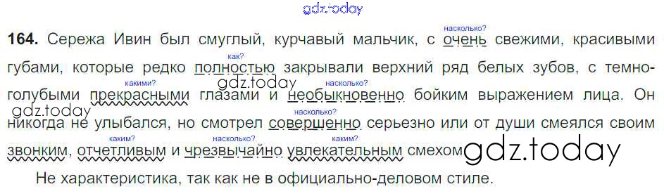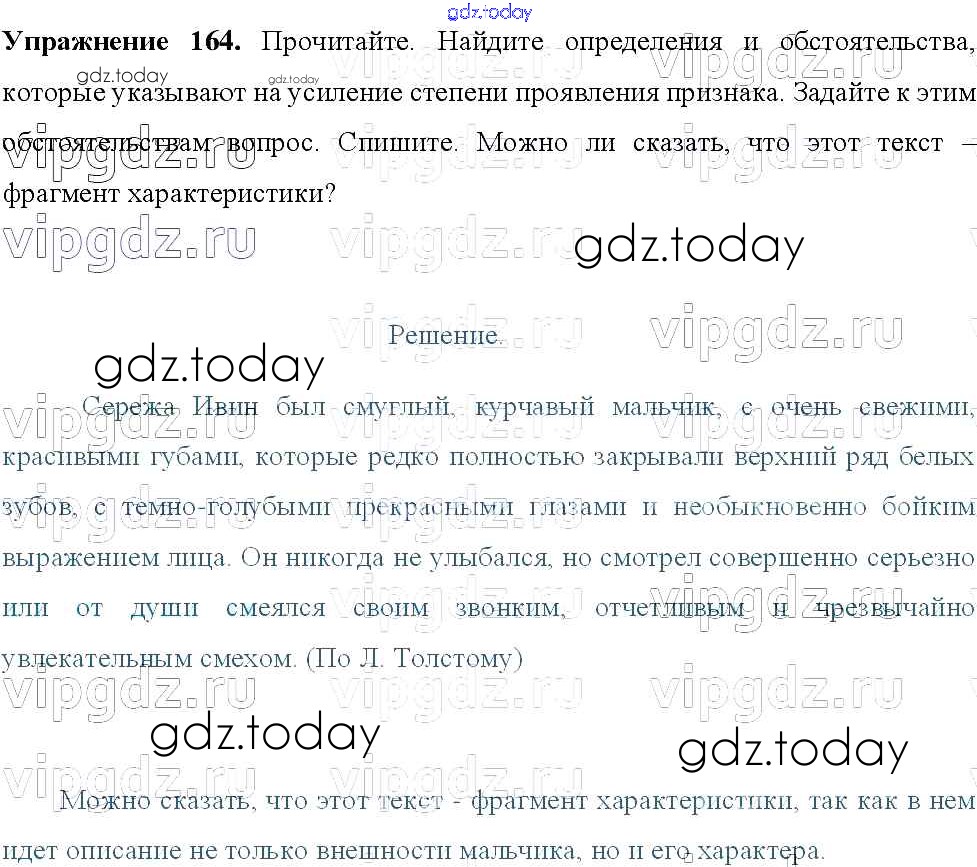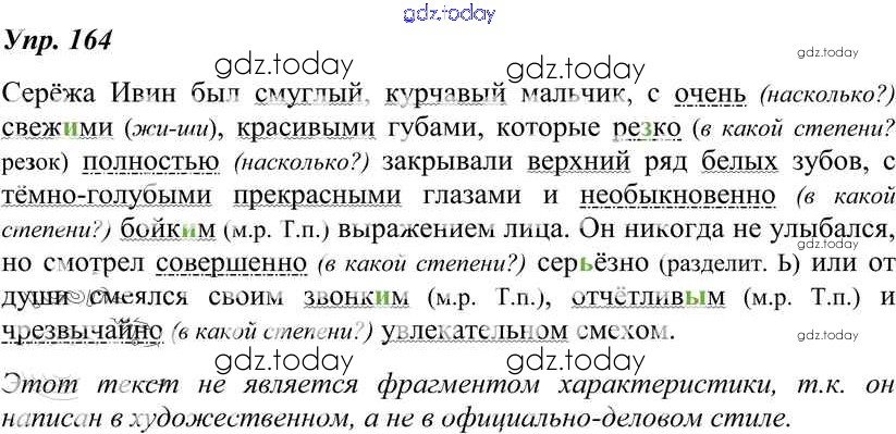 Ответы к Решение к упражнениям 164 Учебнику по Русскому языку для 8 класса Тростенцова, Ладыженская Просвещение 2014