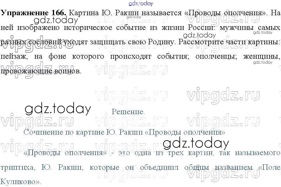 Ответы к Решение к упражнениям 166 Учебнику по Русскому языку для 8 класса Тростенцова, Ладыженская Просвещение 2014