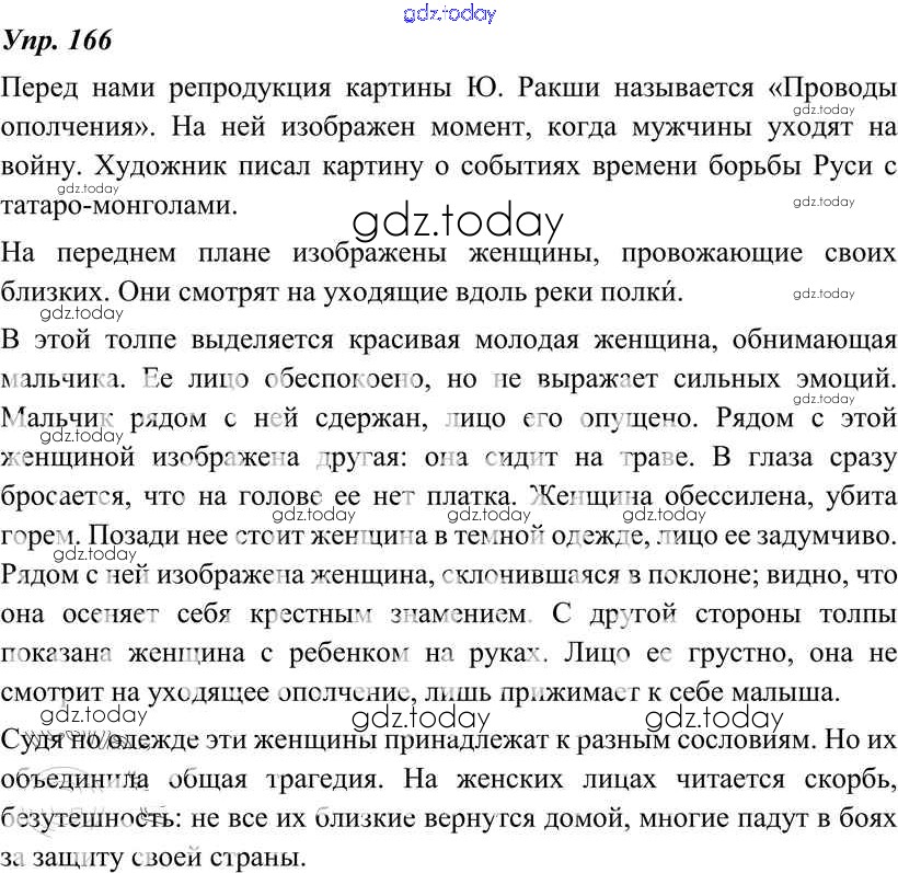На страницах сайта gdz.today вы найдете учебный и вспомогательный материал, направленный на улучшения знаний школьной программы. ГДЗ - онлайн мир знаний Решение к упражнениям 166 Учебнику по Русскому языку для 8 класса Тростенцова, Ладыженская Просвещение 2014