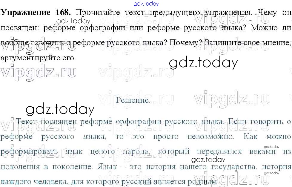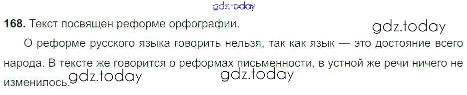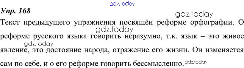 На страницах сайта gdz.today вы найдете учебный и вспомогательный материал, направленный на улучшения знаний школьной программы. ГДЗ - онлайн мир знаний Решение к упражнениям 168 Учебнику по Русскому языку для 8 класса Тростенцова, Ладыженская Просвещение 2014