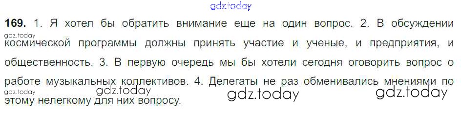 Ответы к Решение к упражнениям 169 Учебнику по Русскому языку для 8 класса Тростенцова, Ладыженская Просвещение 2014