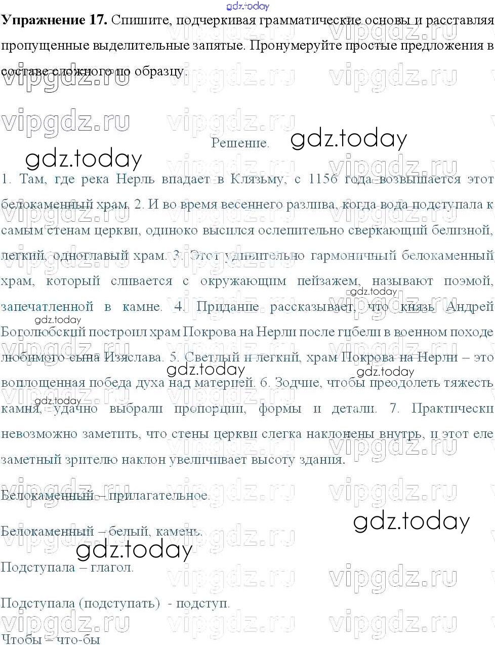 На страницах сайта gdz.today вы найдете учебный и вспомогательный материал, направленный на улучшения знаний школьной программы. ГДЗ - онлайн мир знаний Решение к упражнениям 17 Учебнику по Русскому языку для 8 класса Тростенцова, Ладыженская Просвещение 2014